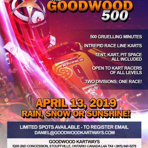 ‘Goodwood 500’ Schedule of Events (Saturday April 13th, 2019)7:00am – Gates Open / Driver Check-in 7:30am – Driver Briefing 8:00am – Kart Raffle 8:15am – Official Weigh in & Ballasting 8:30am – Pit [...]